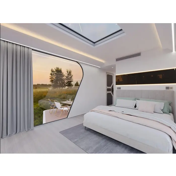 ஸ்மார்ட் காப்ஸ்யூல் ஹவுஸ் உயர்-தரமான முன்னுரிமை நுட்பங்களை ஏற்றுக்கொள்கிறது, இது ஒரு நட்சத்திர மதிப்பிடப்பட்ட ஹோட்டலின் வசதியை வழங்கும் அதே வேளையில், வாழ்க்கை பாதுகாப்பையும் தனியுரிமையையும் உறுதி செய்கிறது. புத்திசாலித்தனமான வெப்பநிலை கட்டுப்பாடு, பனோரமிக் ஸ்கைலைட்டுகள் மற்றும் சூழல் நட்பு பொருட்கள் போன்ற விரிவான வடிவமைப்புகள் மொபைல் குடியிருப்பை ஒரு "காட்டு சொகுசு" இடமாக மாற்றுகின்றன, நவீன பயணம் மற்றும் வாழ்க்கை முறையை மறுவரையறை செய்கின்றன - இயற்கையில் சுத்திகரிப்பு மற்றும் சுதந்திரத்தை அனுபவிக்கின்றன.